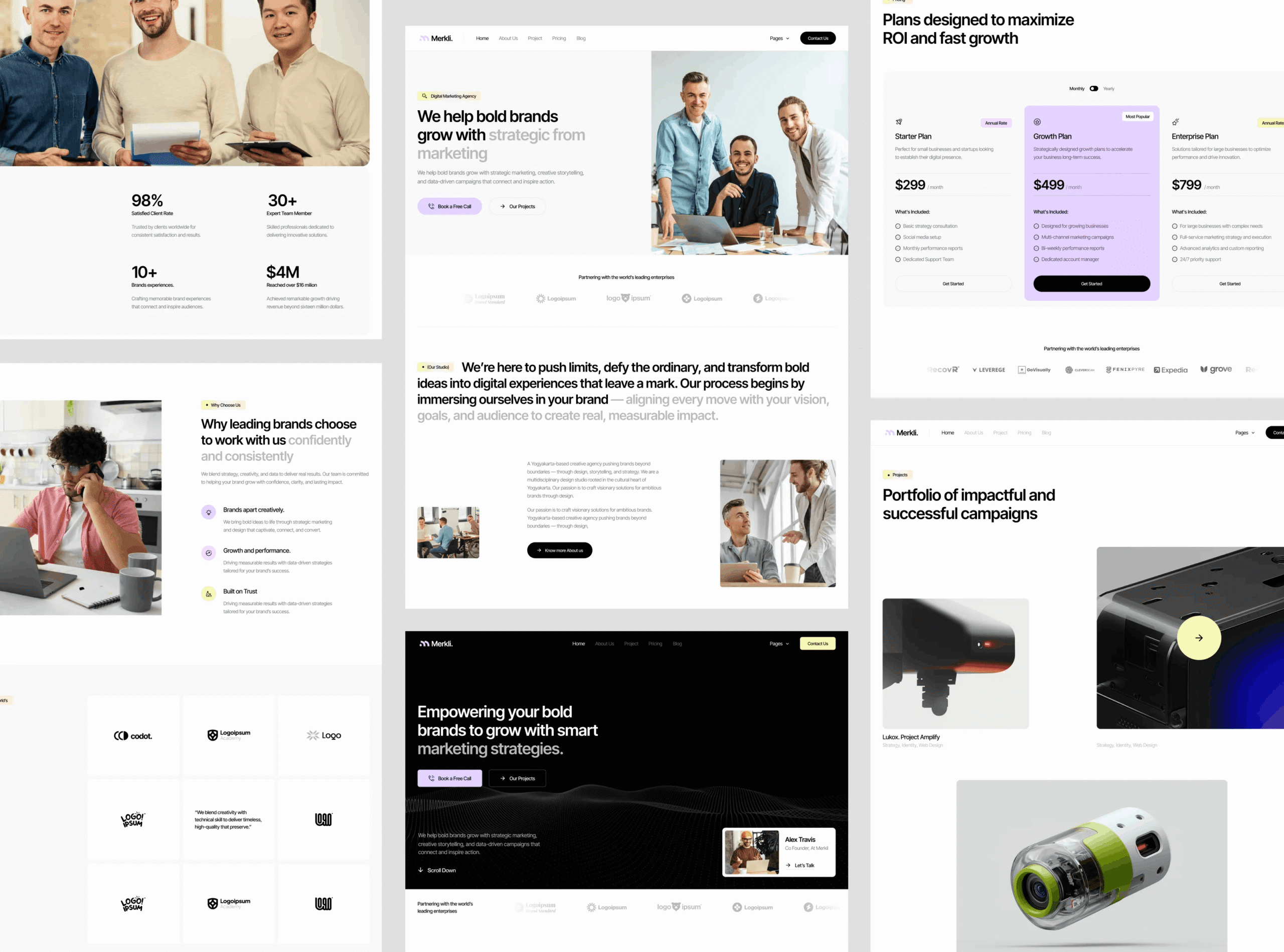 Merkil is a modern website. Showcase your services, portfolio, and case studies with clean layouts, bold design, and responsive pages built to help you attract and convert clients.